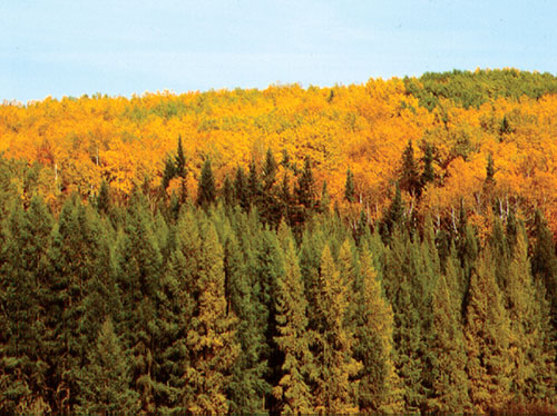 Through the years the areas set aside for commercial operations have varied. In the early years there were forests scattered around the south, some of which are now provincial parks. There are today nine provincial forests forming the Northern Provincial Forest, which is well defined in, protected by, and designated in the Forest Resources Management Act (FRMA). The northern provincial forest falls in the Boreal Plain and Boreal Shield ecozones; it consists of 54.5% of the total provincial area - some 35.6 million hectares. Another 3% occurs as tree cover on private land, and another 1% on federal land. The commercial forest zone (CFZ), in the southern portion of this area, is managed by Forest Management Agreement (FMA) holders under the control and direction of the provincial Forest Service; it falls between the forest boundary on the south and the Clearwater/Churchill systems in the north, and consists of 14.5 million hectares. The area has a number of tree species such as “hardwoods” (Angiosperms, or broad-leafed trees) and “softwoods” (Gymnosperms, or conifers). The softwood species are jack pine (Pinus banksiana Lamb.), white spruce (Picea glauca [Moench] Voss); black spruce (Picea mariana [Mill.] B.S.P.), balsam fir (Abies balsamea [L] Mill), tamarack (Larix laricina [Du Roi] K. Koch); and in the Cypress Hills lodgepole pine (Pinus contorta Dougl). The hardwoods include trembling aspen (Populus tremuloides Michx), black poplar (Populus balsamifera L.), white birch (Betula papyrifera Marsh.), and minor populations of white elm (Ulmus americana L.), green ash (Fraxinus pennsylvatica var.subintegerrima [Vahl] Fern), and Manitoba maple (Acer negundo L.). In the south are bur oak (Quercus macrocarpa) and plains cottonwood (Populus deltoides var occidentalis Rydb.), with several varieties and hybrids of P. deltoides. Current estimates of sustainable harvest are at 7.9 million cubic metres/year, and the harvest is at 4.5 million. Calculations show that this could be increased substantially by increased fire protection and by greater production from agro-forestry sources. In addition, there is potential for using an estimated 1.5 million m3 of mill residues produced by current industry.