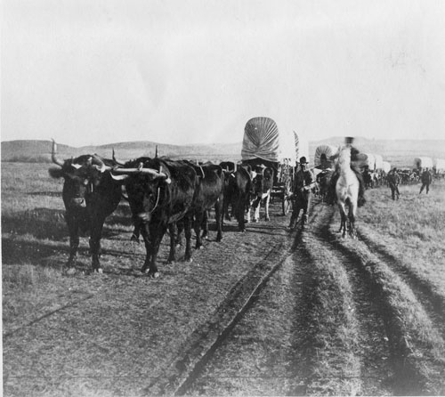 Many of the early settlers who used those trails during the 19th century traveled to Saskatchewan in Red River carts—made popular by the Red River colonists who had established what was, at the time, the most westerly “settlement” in Canada in southern Manitoba. Before the arrival of steamboats and the railways, as many as 2,500 of the carts, with their large wooden wheels and wooden axles lashed to a horse, mule or ox, would bring newcomers to the plains of Saskatchewan each year. In the 1870s, a Red River Cart could be purchased in Winnipeg for between $10 and $15; pulled by oxen, it would average about 15 miles per day while horse drawn carts could travel 15 to 25 miles.